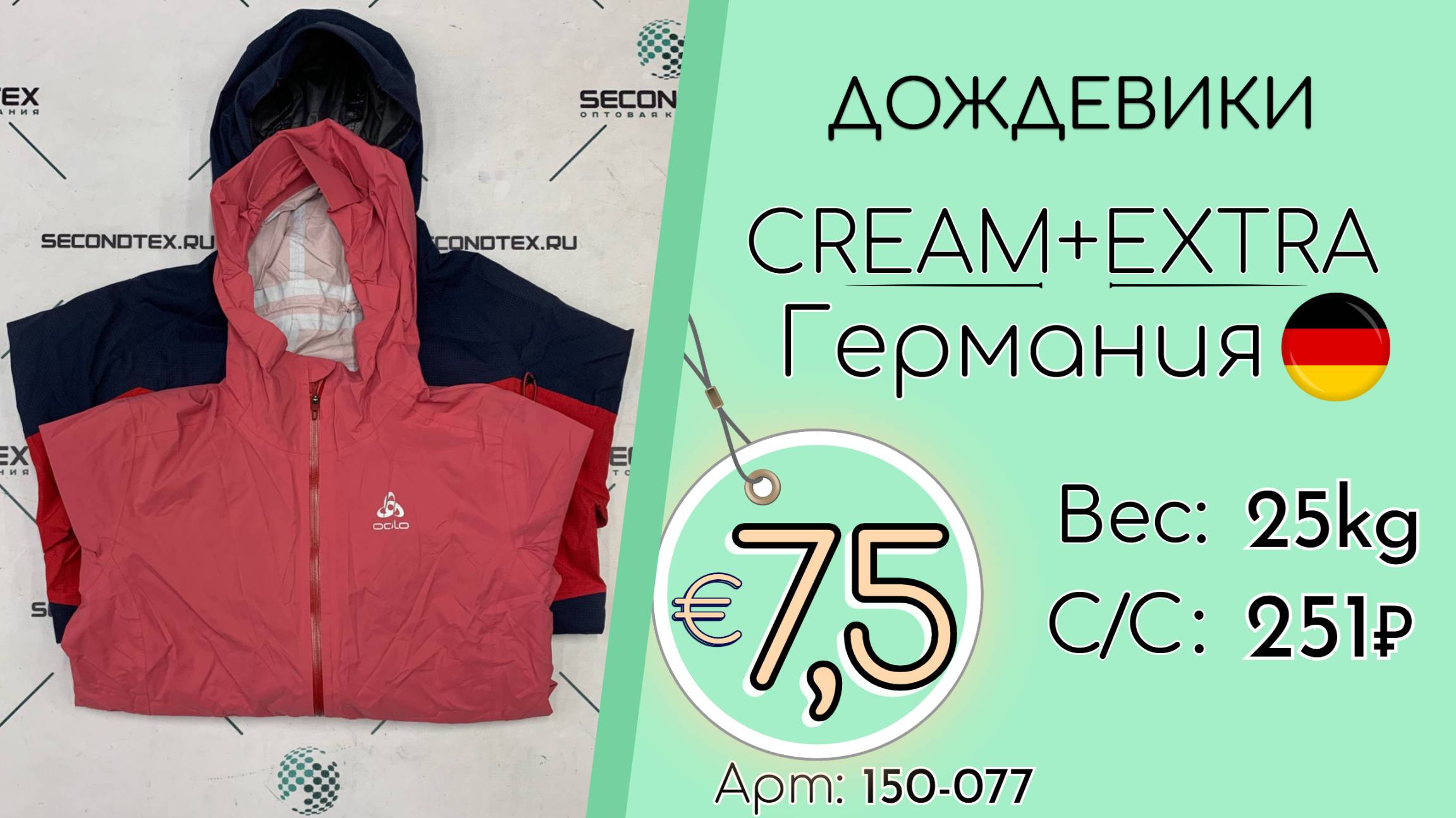 Страна: Германия Вес мешка: 25 кг Цена за кг: Евро 7,5 / Рубли 713 Цена за мешок: 17 813 руб. Себестоимость одной вещи: 251 руб. Кол-во штук: 71 шт. ____ 💰 Курс на дату съемки (04.07.2025): €1 = 95 Руб. (при наличных и безналичных платежах) 💳 €1 = 95 Руб. (при безналичной форме оплаты на р/с) Связаться с нами: +7(916)779-79-79 (WhatsApp, Telegram) Наш сайт: https://secondtex.ru Instagram: https://instagram.com/secondtex.opt Мы ВКонтакте: https://vk.com/secondtex