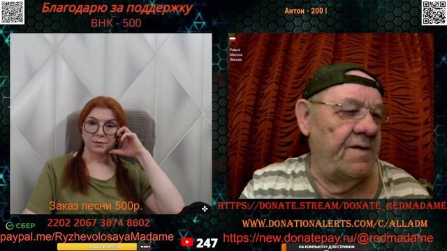 Стримы проводим на новом канале по ссылке https://www.youtube.com/channel/UCpd7cP8a8TbXkhRfZB9-V1g также стримы можно смотреть на следующих платформах https://vkplay.live/rmadame https://vk.com/video/ @RMadame https://boosty.to/ryzhevolosaya-madame Свежие нарезки можно смотреть https://dzen.ru/redheadmadamchat?share_to=link https://www.youtube.com/@RMadam1 https://www.youtube.com/@RMadame Пообщаться в голосовом чате, обсудить новости и узнать первым о предстоящем стриме можно подписавшись на телеграмм канал https://t.me/redheadMadamchat Все беседы ведутся с развлекательной целью и не направлены на разжигание какой либо вражды. Поддержать меня карта Сбер 2202 2067 3874 8602, или голосовым донатом по ссылке https://www.donationalerts.com/r/alladm , https://donate.stream/donate_redmadame , https://donatepay.ru/don/redmadame Для вопросов и предложений @RedHeadMadamBot