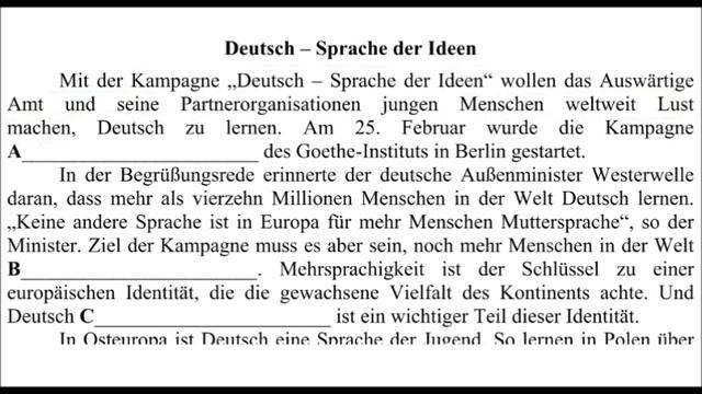 ЕГЭ 2016. Чтение. Задание на структурно - смысловые связи. Немецкий язык.
