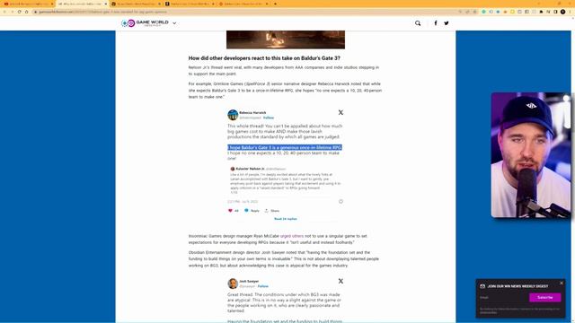 Baldur’s Gate 3 is so good that its making other developer's “defensive”. For context - Developers are asking gamers to not demand that Baldur’s Gate 3 be the baseline of all RPG’s . See the tweets in the video. On the other side of the coin - Baldur’s Gate 3 has quicky risen to be one of Steams most popular games. So where do you stand in this? Should developers produce games akin to Baldur’s Gate 3? Or should Baldur’s Gate 3 be considered an anomoly? #baldursgate3 #baldursgate #news
