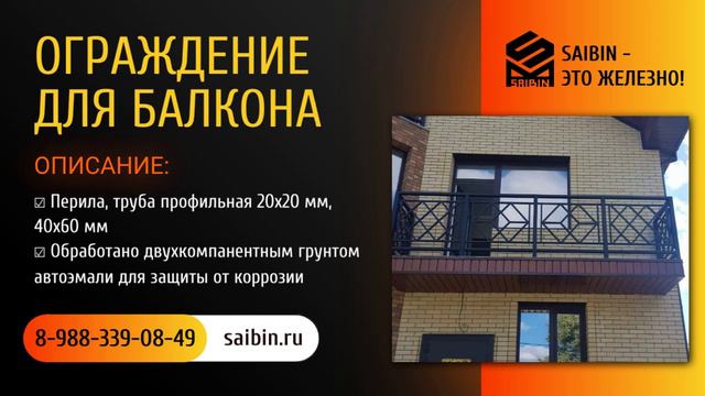 Компания SAIBIN изготовила ограждение для балкона ОПИСАНИЕ: - Перила, труба профильная 20х20 мм, 40х60 мм - Обработано двухкомпанентным грунтом автоэмали для защиты от коррозии РАБОТАЕМ ПОД КЛЮЧ: ☑ Бесплатный замер ☑ Закупка материалов ☑ Доставка ☑ Установка Консультация по тел.: 8-988-339-08-49 #SAIBIN - это ЖЕЛЕЗНО! Адрес: г-к Анапа, станица Анапская, улица Промышленная, 3 Сайт: saibin.ru WhatsApp: wa.me/79883390849 E-mail: m.saibin@yandex.ru ВКонтакте: vk.com/saibin Одноклассники: ok.ru/saibin Телегам канал: t.me/saibin_ru Дзен канал: dzen.ru/saibin Рутуб канал: rutube.ru/channel/33681387 Ютуб канал: youtube.com/@saibin_ru/ #saibin_этожелезно #металлоконструкции #навесы #лестницы #ограждения #мебель #сварочныеработы #анапа #anapa
