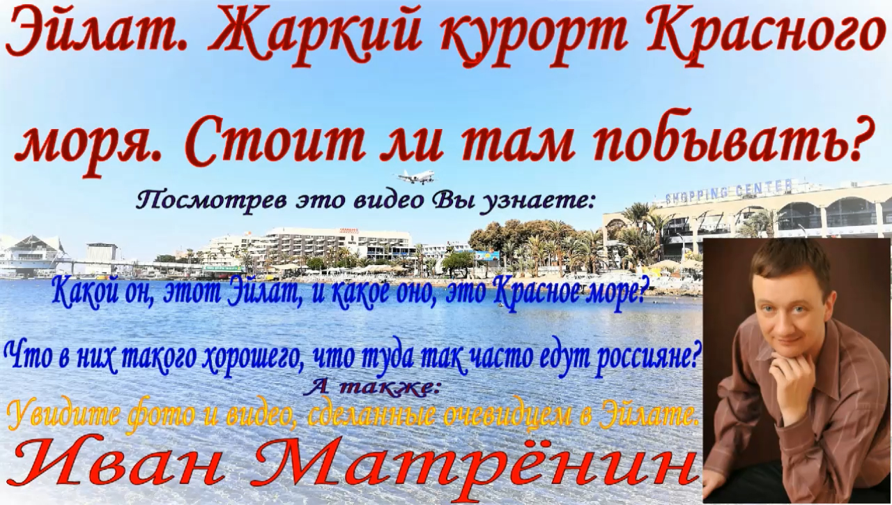 Эйлат. Жаркий курорт Красного моря. Стоит ли там побывать? Посмотрев это видео Вы узнаете: Какой он, этот Эйлат, и какое оно, это Красное море? Что в них такого хорошего, что туда так часто едут россияне? А также: Увидите фото и видео, сделанные очевидцем в Эйлате. Эйлат, один из любимых курортов у россиян. Он расположен достаточно далеко на юг от основных городов Израиля. Далеко – по меркам Израиля, совсем не большой страны. Ближайший крупный город, Беэр-Шева, находится в 190 километрах (по прямой линии; по дорогам — около 240 км) от Эйлата. Приведу для примера, расстояния до основных курортных городов: от Эйлата до Тель-Авива – 344 км; от Эйлата до Ейн-Геди (курорт не Мёртвом море)– 237 км; от Эйлата до Хайфы – 427 км; от Эйлата до Иерусалима – 319 км от Эйлата до– Акобы (Иорданский курорт на Красном море) - 327 км. Эйлат расположен на берегу Эйлатского залива Красного моря. Ширина залива в северной его оконечности, там, где находится Эйлат, составляет всего 5 км. До Эйлата из центра можно добраться автобусом либо самолётом — в Эйлате имеется одноимённый аэропорт, обслуживающий в основном местные рейсы. Причём приземляются эти самолёты, пролетая над пляжем, и садясь практически в центре города. Также в 60 км к северу от Эйлата расположен международный аэропорт Увда. В Эйлате мягкий климат даже зимой. Эйлатский залив находится в сердце пустыни и окружён, как стеной, высокими горами, что обусловило высокую испаряемость и привело к тому, что концентрация солей в заливе составляет 4,1 % (значительно выше средней в океане). Температура воды никогда не опускается ниже 22 °C. Совокупность этих факторов обеспечивает образование и существование кораллов. Эйлатский залив является конечным, северным пунктом тропических коралловых рифов. Кораллы Красного моря окаймляют побережье довольно широкой полосой. Эйлат, это самый сухой район Израиля. Относительная влажность воздуха составляет здесь всего 20—30 %, летом температура поднимается порой до +45 °C (21 июня 2010 был установлен рекорд — температура превысила +50 °C). Когда мы отдыхали в июне, температура колебалась от 37 градусов ночью и 35 ранним утром, до 43-45 днём. Пишут, что жара относительно легко переносится благодаря сухости воздуха и ветрам. Но по личному опыту – тяжело… Зима теплая и мягкая, с небольшим количеством осадков, температура морской воды круглый год остается примерно одинаковой: от +22° зимой до +26° летом. Благодаря уникальному климату Эйлат стал признанным центром зимнего отдыха, привлекающим многочисленных туристов, как из Израиля, так и из-за рубежа. Это видео, отзыв обычного человека, который путешествует по миру с самым обычным для россиянина бюджетом. Я хочу помочь таким же путешественникам из России, рассказав о том, что будет важно в таком путешествии. Я показываю Эйлат в фото и видео, сделанных лично мною, на мой личный сотовый телефон. Это означает, что Вы не увидите приукрашивания реальности, а увидите всё как есть. Приятного просмотра! Контакты: эл. почта – myvan@mail.ru. Телефон, whatsapp, viber, telegram - +7 965 605 46 99 адрес вконтакте личный – Иван Матрёнин – https://vk.com/matreninivan адрес в одноклассниках личный - https://ok.ru/myvan Вступайте, пишите! Соц. сети: Сообщество Вконтакте: Группа о путешествиях и для путешественников – «Клуб путешественников» - https://vk.com/ivanmatrenintravel Группа о психологии - Иван Матрёнин| Психология отношений – h