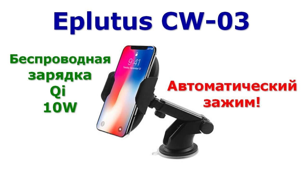 Eplutus CW-03 - обзор держателя с беспроводной зарядкой и автоматическим приводом зажима смартфона. Зарядное устройство оснащено ИК-сенсором, который распознает что вы подносите телефон к устройству и лапки держателя автоматически раздвигаются. После чего силиконовая резинка вокруг зажимов также автоматически сжимается. Все, ваш телефон надежно закреплен! Телефон снимается с держателя одной рукой, для этого достаточно коснуться сенсорной кнопки сбоку устройства и оно "отпустит" смартфон. Беспроводная зарядка. Подключите один раз зарядное устройство к кабелю и заряжайте свой смартфон без провода! Быстрая зарядка. Quick Charge зарядка совместимых смартфонов. Устройство поддерживает быструю зарядку 10ВТ, стандартную зарядку 5 Вт и зарядку для iPhone 7.5 Вт. Универсальная установка. В комплект входит набор для крепления держателя на присоску и в вентиляционную решетку. Настройка удобного угла обзора при помощи выдвижной ручки и вращения на 360 градусов.