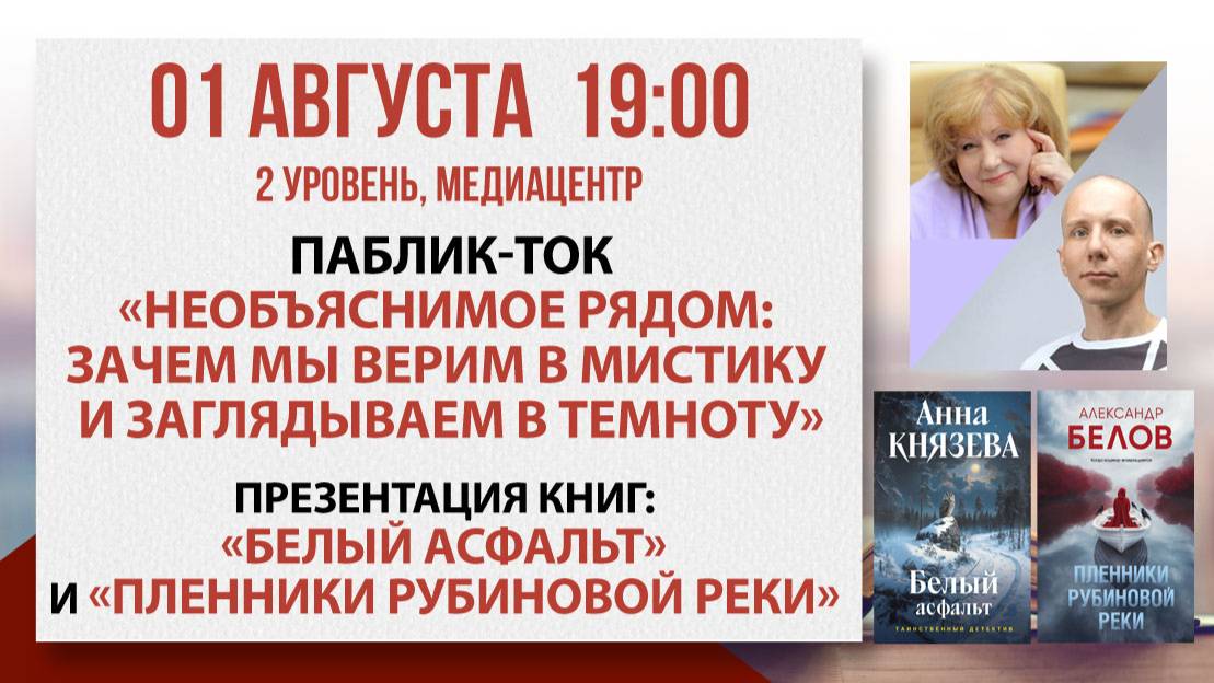 Представляем запись паблик-тока с авторами мистической прозы Анной Князевой и Александром Беловым. Анна — мастер современной прозы, автор детективного жанра. Александр – писатель, автор мистической прозы. Мистика сопровождает человека с древности. Мы отрицаем её, боимся, и все же возвращаемся к леденящим душу историям. Почему? Что мы находим в этих сюжетах — страх или утешение? Как работает мистика в современной литературе? Почему преступление в «мистическом детективе» пугает не фактами, а тенью? Писатели Анна Князева и Александр Белов — мастера мистической прозы, в их книгах логика соседствует с иррациональностью, а за внешним расследованием всегда скрывается нечто большее. На встрече авторы представляют свои литературные новинки: “Белый асфальт” и “Пленники рубиновой реки“. ____________________________ «Библио-Глобус» – старейший книжный магазин в самом центре Москвы и один из крупнейших в Европе. У нас вы можете найти книгу на любой вкус из 200 тысяч наименований. Мы предлагаем широкий выбор изданий на более чем тридцати иностранных языках. Ежедневно мы проводим встречи с известными авторами, актерами и спортсменами, организуем музыкальные квартирники и детские мероприятия, предоставляем площадку для театральных постановок и много другого. Все права на настоящие аудио-, видеоматериалы защищены и охраняются законом. Использование материалов без согласия ООО Торговый Дом «БИБЛИО-ГЛОБУС» не допускается. Наш сайт: http://www.biblio-globus.ru/ Мы в социальных сетях: VK: https://vk.com/biblioglobus_msk Telegram: https://t.me/biblioglobus_1 С любовью, Ваш "Библио-Глобус"