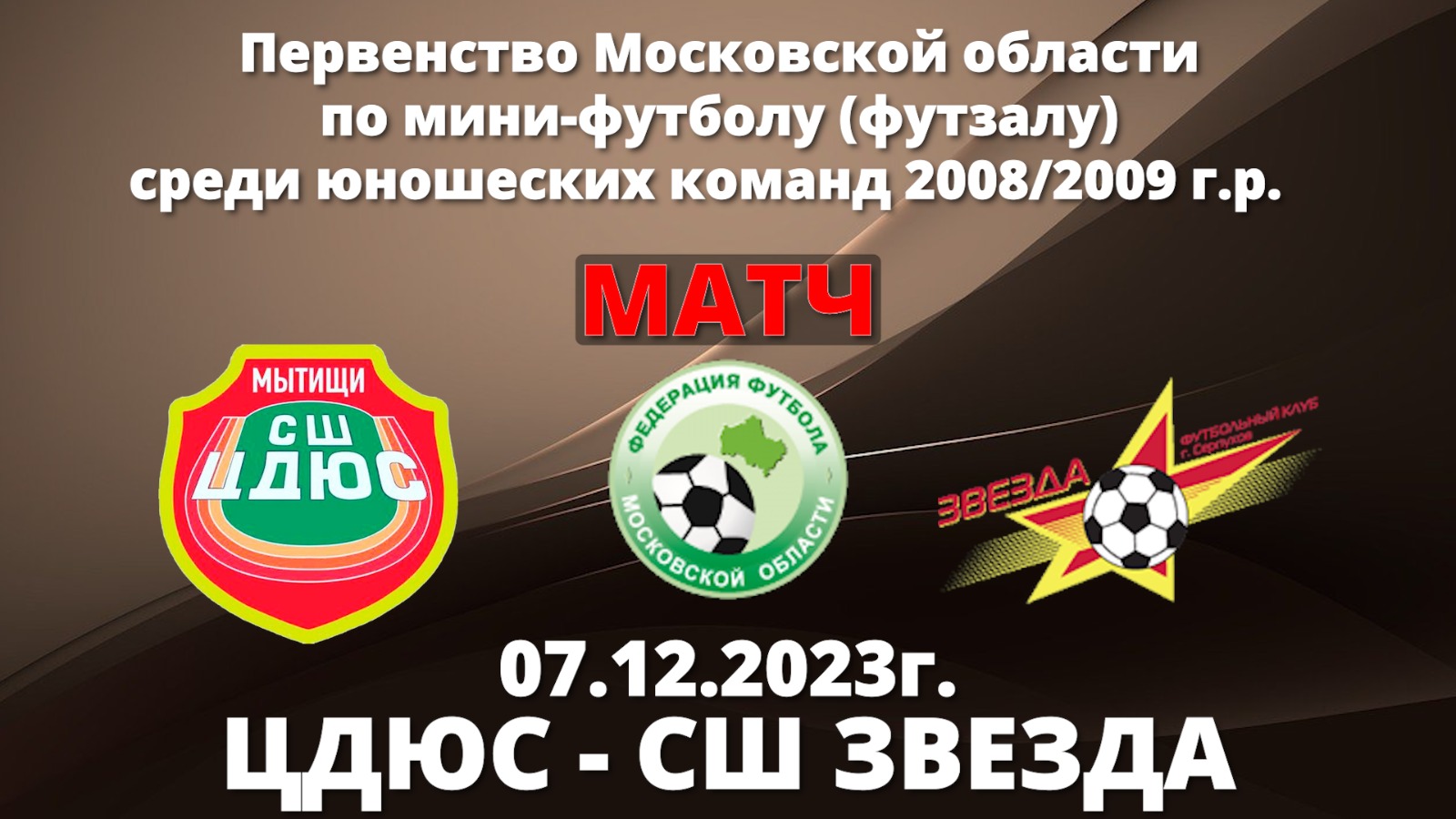 Матч! ЦДЮС-СШ Звезда (Серпухов) 07.12.2023г. Первенство Московской области по мини-футболу (футзалу)