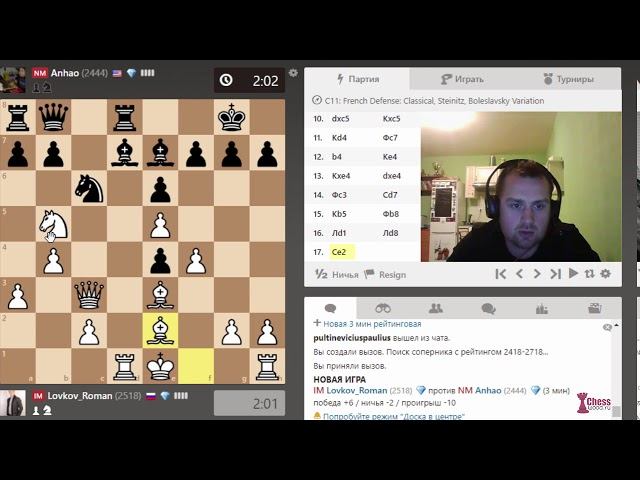 Блиц-баттл № 002. Французская защита. Система Стейница. Пешечный зажим!