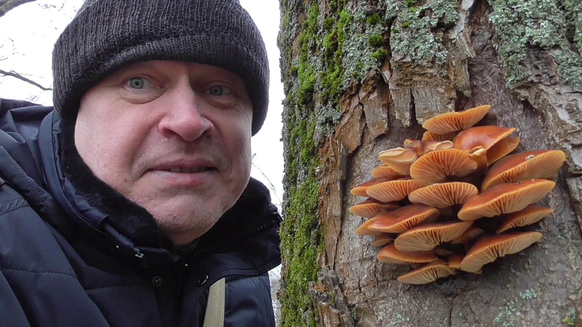 Грибы зимние опята на дереве