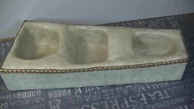 Неровная коробка для хранения из бутылок и яичных лотков . Масса из лотков - лотки залить кипятком ,остудить ,размельчить комбайном ,блендером ,отжать ,добавить клей пва ,шпаклевку , можно жидкое мыло и масло .