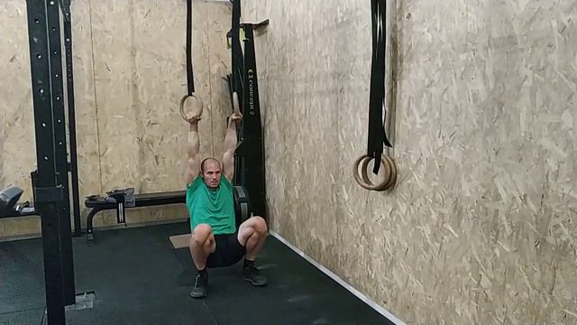 Подтягивания на кольцах глубоким хватом с ногами на полу
