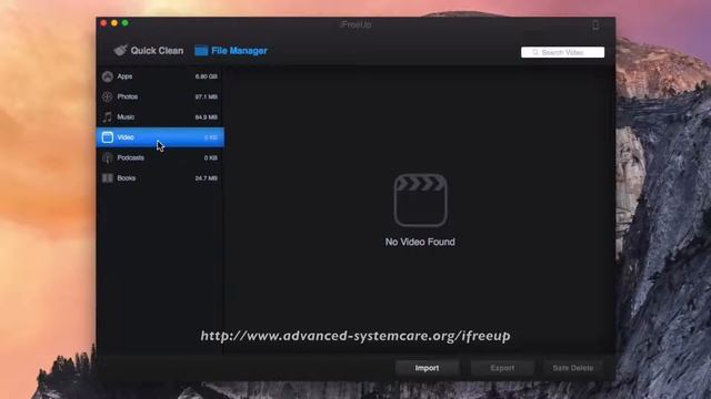 iFreeUp File Import Function - support importing photos, video, music, books, apps, and podcast from computer to your iPad Air 2/1. iFreeUp is an easy-to-use yet powerful system utility for iPad Air 2/1 users to clean junk files, free up more storage space and even protect private data. Similar to Windows PCs, iOS devices also suffer from slow response, over occupied storage, system issues, and other privacy risk. iFreeUp is designed to solve these issues with just one-click. It clears out junk files in the system for more storage space and removes Safari cookies, chat records against potential threats. It is a reliable tool to keep your iPhone, iPad Air 1/2, iTouch and iPod running smoothly. [Download for Windows & Mac] http://www.advanced-systemcare.org/ifreeup iFreeUp Key Features: * Junk Files Clean - scan and clean big files, downloads from web browsers for more free storage space on iPad Air 2/1 * Performance Boost - remove photo cache, crash logs to boost the performance of your iOS devices, such as iPad Air 2/1 * File Import Function - support importing photos, video, music, books, apps, and podcast from computer to your iPad Air 2/1. * File Export Function - support exporting photos, video, music, books, apps, and podcast from iPad Air 2/1 to your computers. * Secure Deletion - shred every deleted file to prevent privacy leak