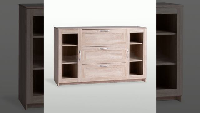 СИРИУС тумба 2 двери со стеклом и 3 ящика 156х95 сонома