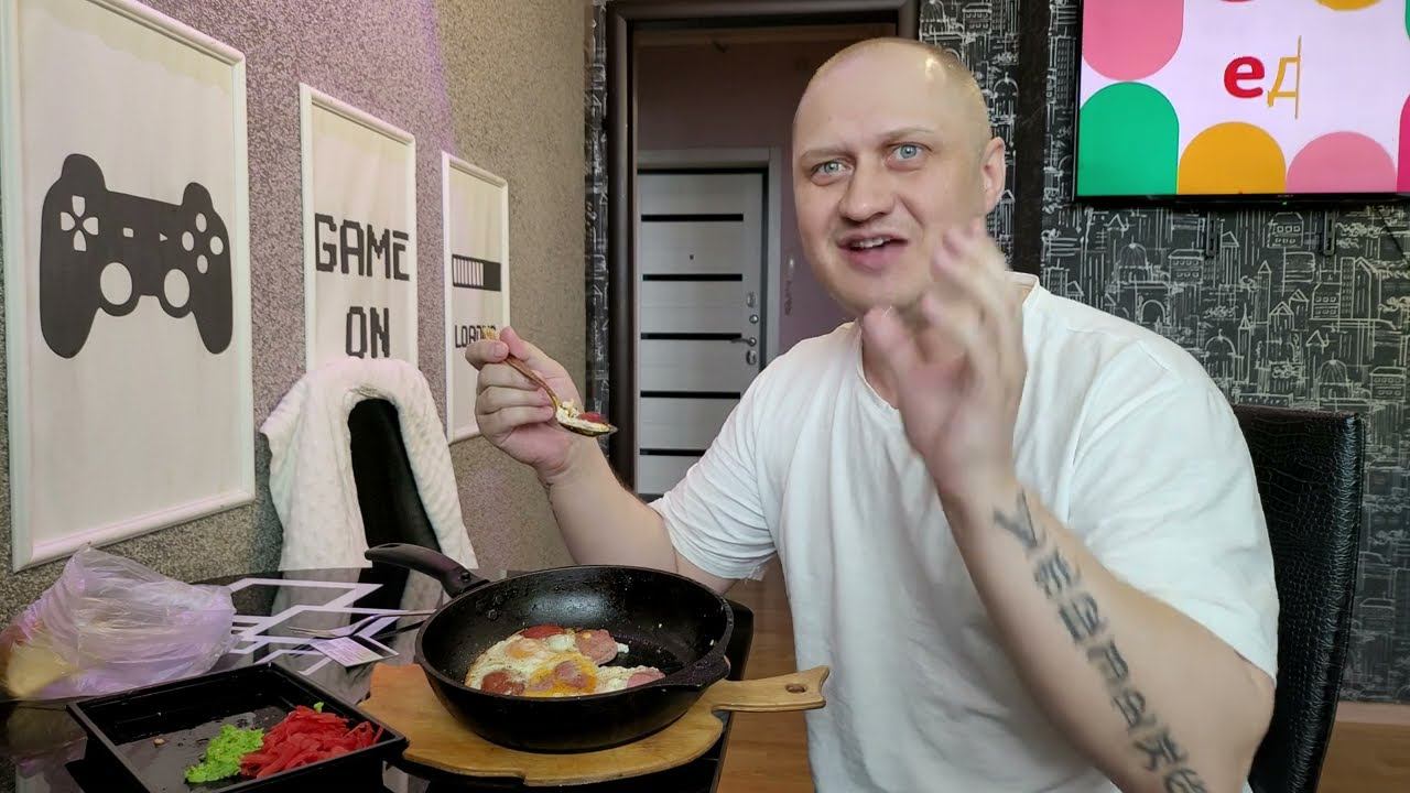 МУГБАНГ - ЖАРЕНАЯ ЯИЧНИЦА С КАЛБАСОЙ ВАСАБИ И ИМБИРЁМ