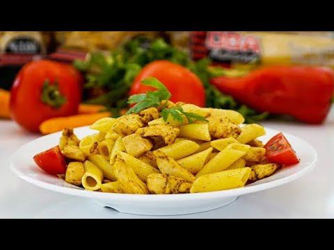 МАКАРОНЫ С КУРИЦЕЙ И ГРИБАМИ ПОД СЛИВОЧНЫМ СОУСОМ КАРРИ