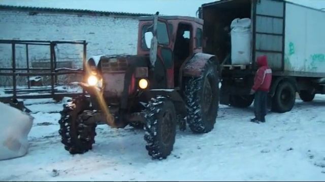 В данном видео трактор Т-40 разгружает соль в мешках
