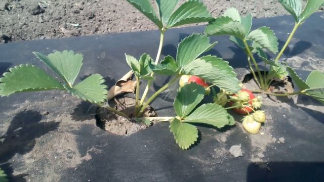 Наблюдение за клубникой под черным укрывным материалом #огород #клубника