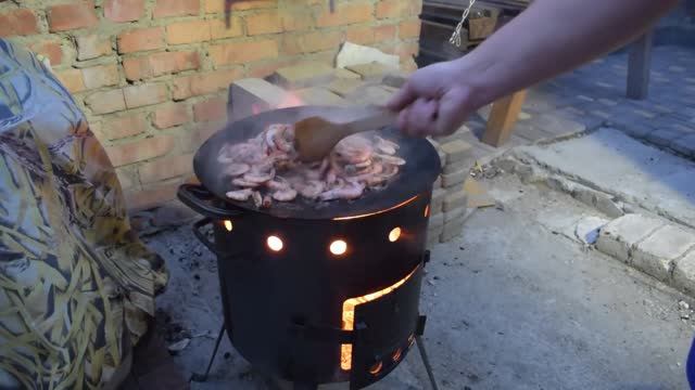 Жарим креветки с использованием САДЖа на дровяной печи