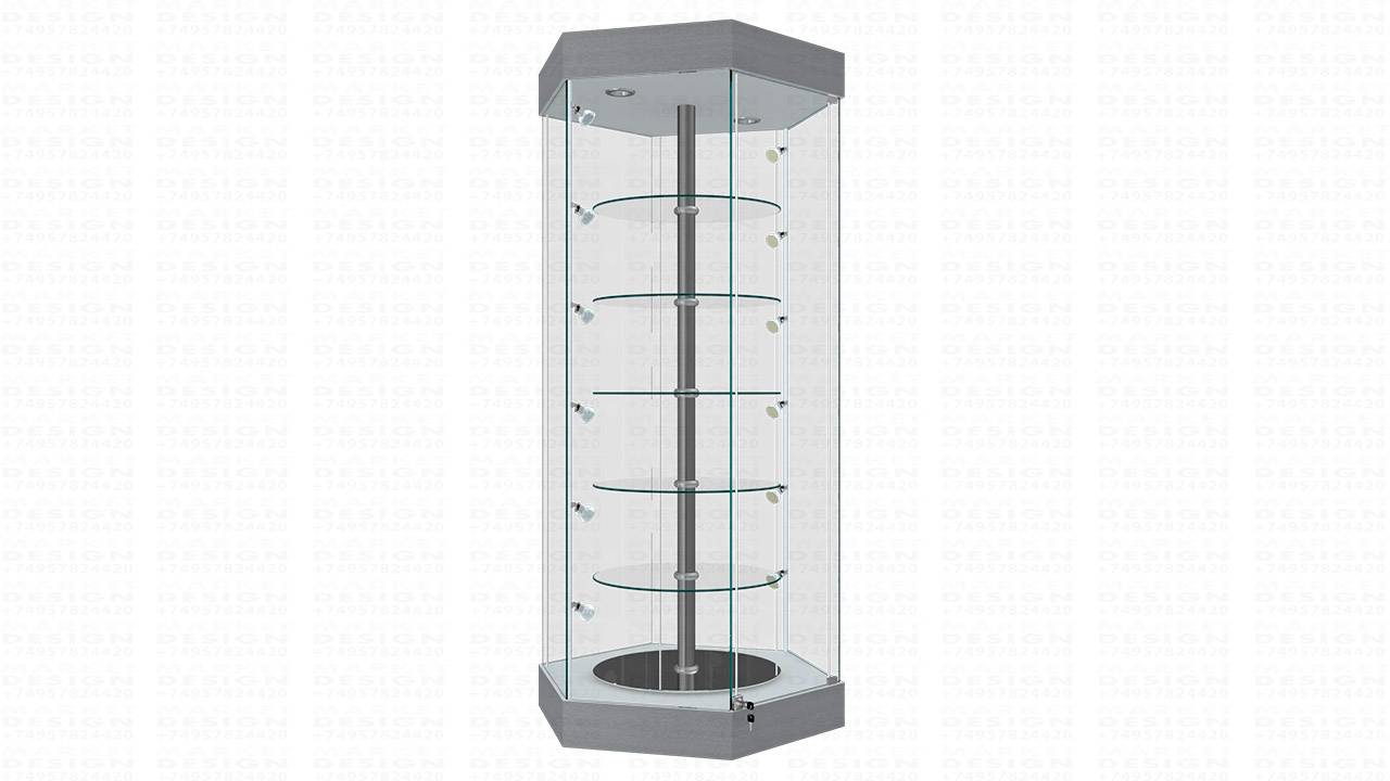Шкаф витрина шестигранник с крутящимися полками
