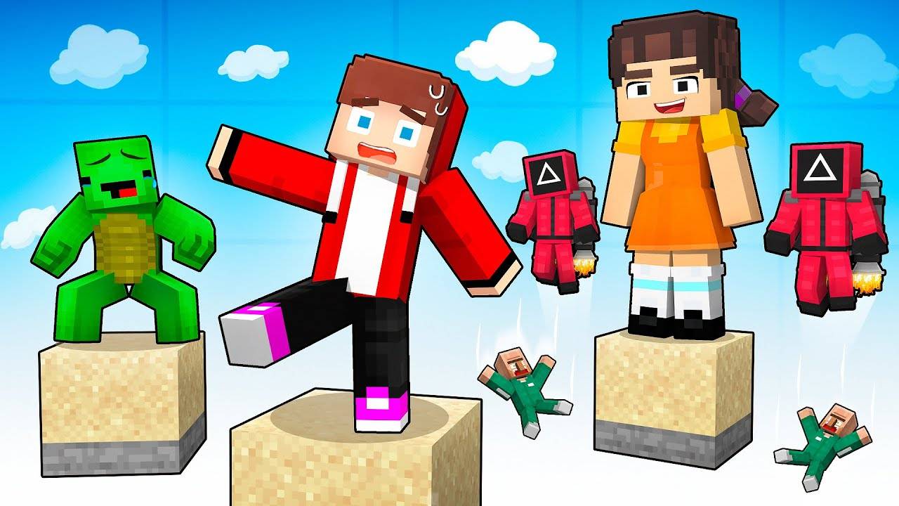Джей Джей и Майки ИГРАЮТ В ИГРУ ONE Block SQUID - Майнкрафт анимация