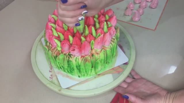 Торт букет тюльпанов#Оформление торта зефирными тюльпанами#Cake decoration with marshmallow tulips