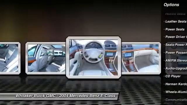 2004 Mercedes-Benz E-Class 5.0L http://www.whitakerauto.com For more information on this vehicle and our full inventory, call us at 866-583-8053 Whitaker Buick GMC 131 19th St. SW Forest Lake Minneapolis MN 55025 E500 4MATIC�, 5.0L V8 SMPI SOHC, Brilliant Silver Metallic, Ash w/Leather Seat Trim, 4-Wheel Disc Brakes, Non-Smoker, Travel in Comfort in this car. The Seats are so comfortable and the Heat makes the back feel so good! ABS brakes, Adaptive suspension, Air Conditioning, Alloy wheels, AM/FM Single CD, Auto-dimming Rear-View mirror, Automatic temperature control, Clean Carfax with No Accident History, Dual front impact airbags, Dual front side impact airbags, Electronic Stability Control, Front dual zone A/C, Front reading lights, harman/kardon� Logic 7� Digital Surround, Heated door mirrors, Heated Front Seats, Illuminated entry, Leather Seat Trim, Leather Shift Knob, Leather steering wheel, Memory seat, Occupant sensing airbag, Outside temperature display, Panorama Sunroof, Power adjustable front head restraints, Power door mirrors, Power driver seat, Power passenger seat, Power Sunroof Sunshade, Power Rear Window Sunshade, Power windows, Premium audio system, Rear window defroster, Remote keyless entry, Security system, Speed control, Steering wheel mounted audio controls, Tachometer, Power Telescoping steering wheel, Power Tilt steering wheel, Traction control, Trip computer, Turn signal indicator mirrors, and Variably intermittent wipers. Looking for an amazing value on a great 2004 Mercedes-Benz E-Class? Well, this is IT! J.D. Power and Associates gave the 2004 E-Class 4.5 out of 5 Power Circles for Overall Initial Quality Design. New Car Test Drive said it ...redefined its traditional best seller with loads of new technology, a sensuously athletic new look and more youthful, vigorous driving dynamics... The precision-tuned 5.0L V8 SMPI SOHC engine provides the very essence of performance, delivering substantial horsepower and torque. OUR BEST PRICE PRICING STRATEGY FOR OUR PRE-OWNED VEHICLES IS POWERED BY SOME GREAT SOFTWARE THAT INSURES YOU ARE GETTING THE BEST DEALS AROUND FOR THE EQUIPMENT ON THESE VEHICLES! Our inventory changes daily, so if you like this vehicle, please call to verify availability and schedule your appointment for a test-drive. At WHITAKER our name means a GREAT DEAL. Whitaker Buick GMC is proud to serve the Minneapolis Minnesota and surrounding areas including St. Paul, St. Cloud, Duluth, Cambridge, Pine City, Rush City, Chisago, Forest Lake, Isanti, Anoka, Ham Lake, White Bear Lake, Hugo, Osceola, St. Croix Falls, Hinckley and more!