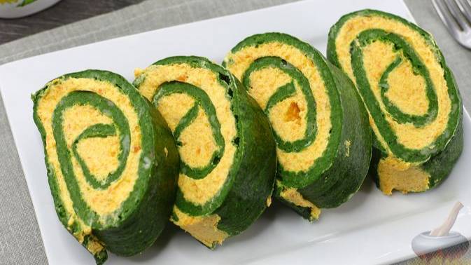 Нарядно и изысканно - идеально для праздничного стола! ШПИНАТНЫЙ БИСКВИТ С МОРКОВЬЮ
