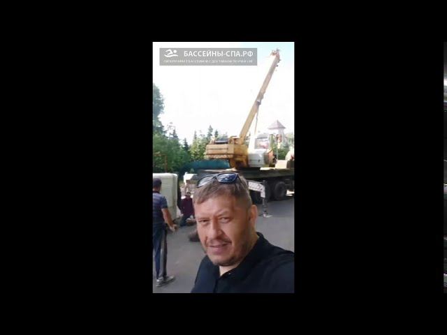 Установка плавательного спа бассейна краном с выносом на 31 метр. Видео от магазина Бассейны-спа.рф