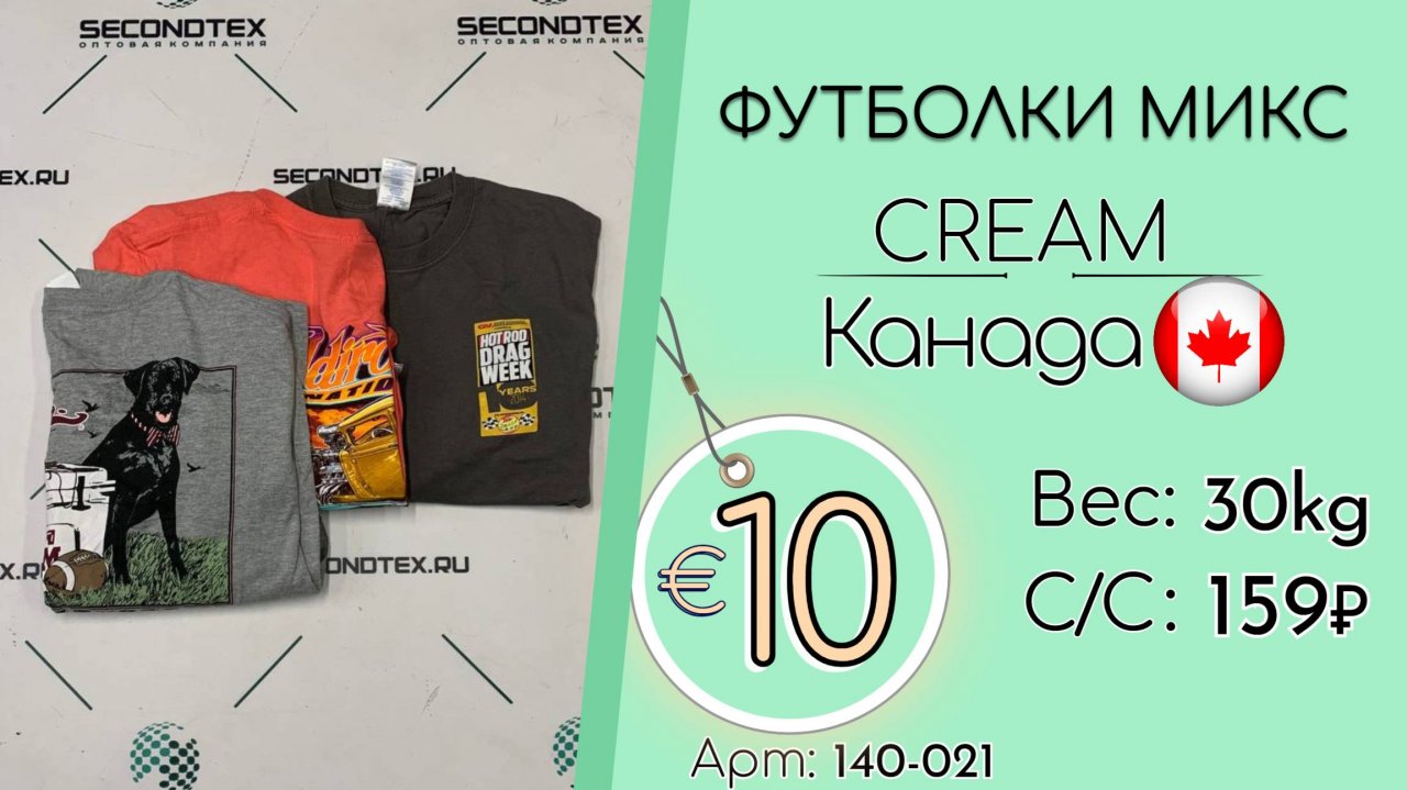Страна: Канада Вес мешка: 30 кг Цена за кг: Евро 10 / Рубли 940 Цена за мешок: 28 200 руб. Себестоимость одной вещи: 159 руб. Кол-во штук: 177 шт. ____ 💰 Курс на дату съемки (20.05.2025): €1 = 94 Руб. (при наличных и безналичных платежах) 💳 €1 = 94 Руб. (при безналичной форме оплаты на р/с) Связаться с нами: +7(916)779-79-79 (WhatsApp, Telegram) Наш сайт: https://secondtex.ru Instagram: https://instagram.com/secondtex.opt Мы ВКонтакте: https://vk.com/secondtex