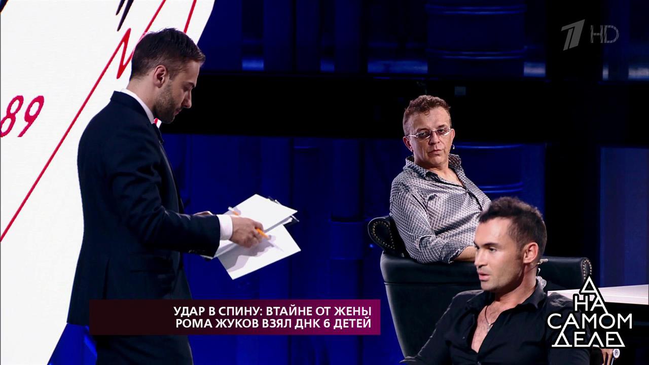 За тем, как известный певец Рома Жуков разводится с Еленой, матерью его шестерых детей, следит вся страна. В прошлом выпуске программы в ходе проверки на детекторе лжи выяснилось, что Елена изменяла мужу. Сегодня певец повторно вызвал ее на детектор лжи. Втайне от Елены Роман провел ДНК-тестирование всех их шестерых детей, поскольку теперь не уверен в своем отцовстве. Роман считает, что певец Юрий Титов является настоящим отцом по меньшей мере их младшего сына. Как Елена воспримет этот удар в спину? И какими окажутся результаты шести генетических экспертиз?