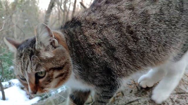Бездомная мурлыка зимой на Солнечной тропе. Ялта Крым