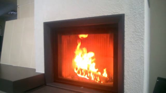 горение полена при средней подаче воздуха в камин.
