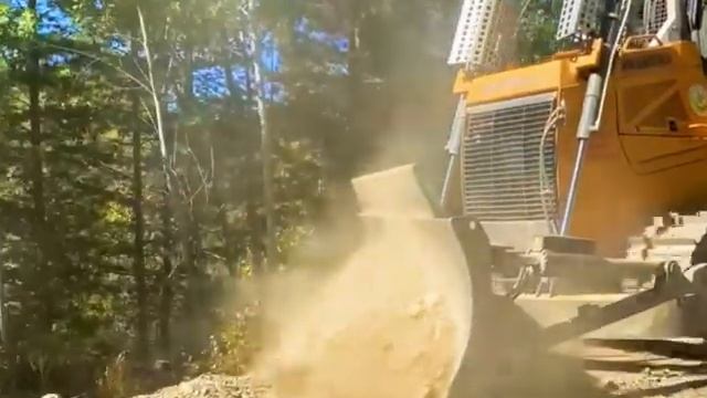 Водитель бульдозера Открывает Новую Горную Дорогу Через Густой лес, Удивительная работа опытного