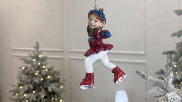 Ёлочная игрушка ФИГУРИСТКА КРИСТИ в красном свитере, полистоун, 11 см, 1001094