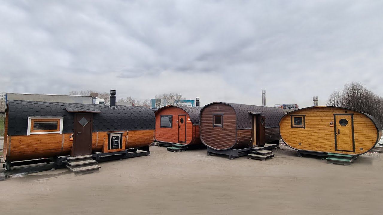 Большая выставка бань-бочек. Как переезжали. Посмотреть и пощупать. Консультация и расчет