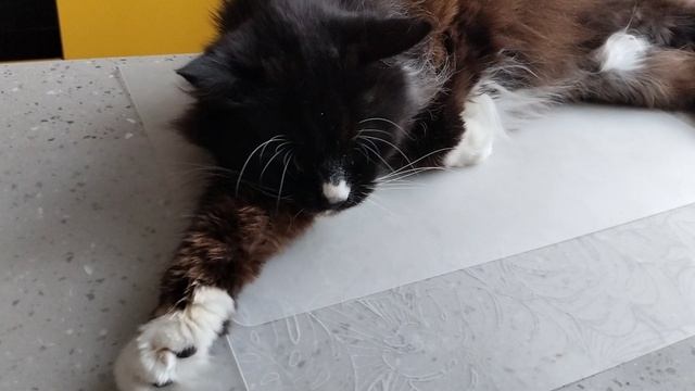 Кошка улеглась на столе,никак не выгонишь.