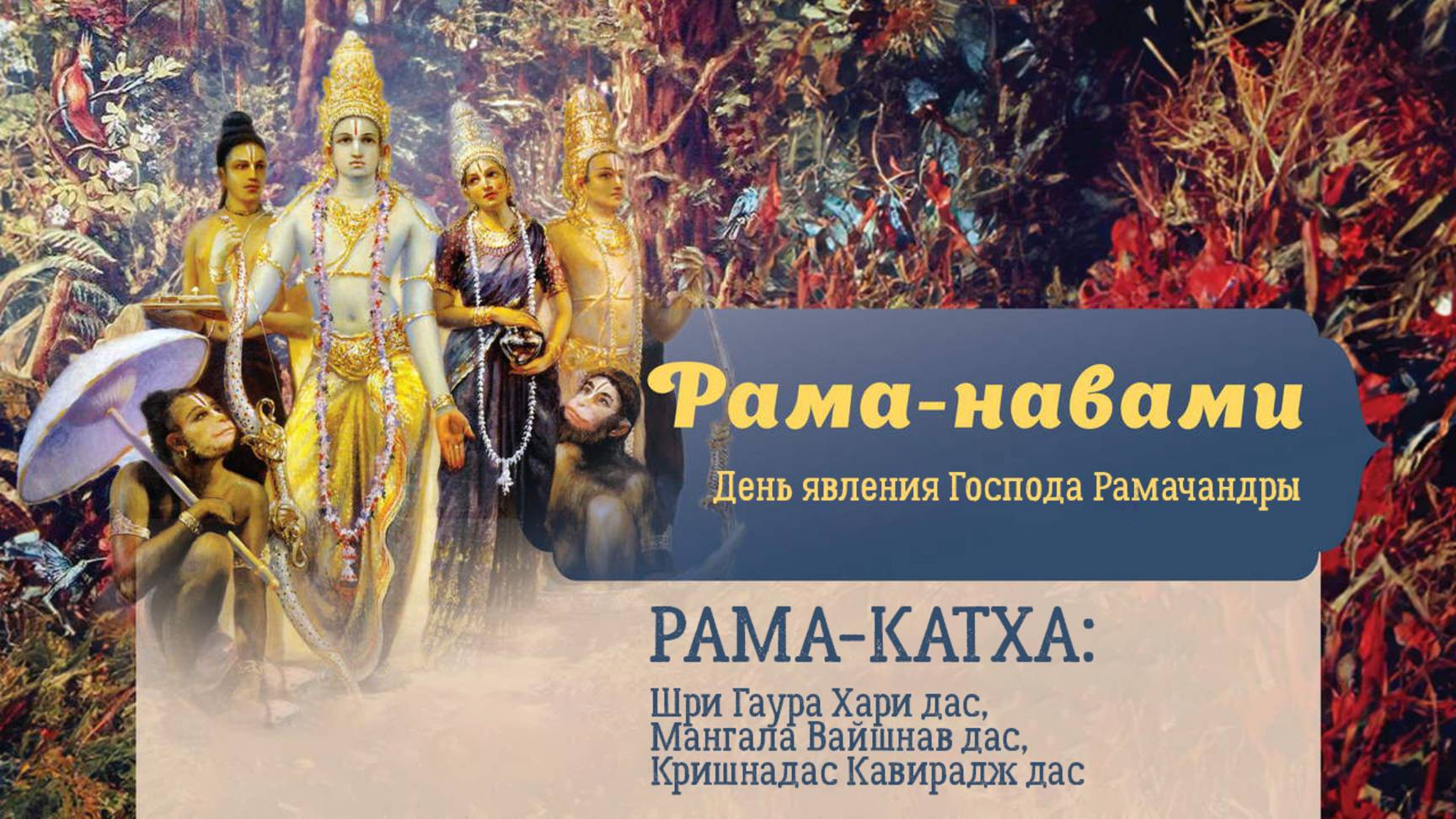 6.04.25 (9:15) - катха, посвященная празднованию Рама-навами: 09:15 - Е.М. Шри Гаура Хари дас, 10:15 - Е.М. Мангала Вайшнав дас, 11:15 - Е.М. Кришнадас Кавирадж дас
