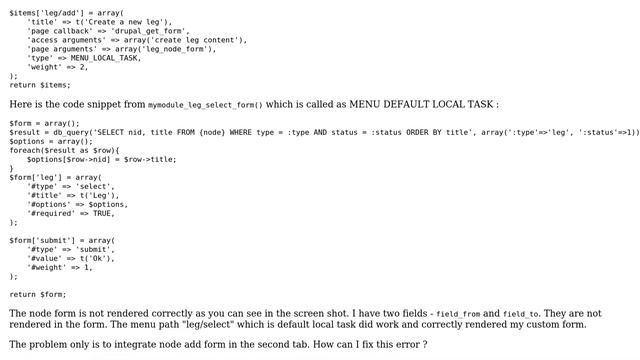 Drupal: Drupal hook menu and node form Helpful? Please support me on Patreon: https://www.patreon.com/roelvandepaar With thanks & praise to God, and with thanks to the many people who have made this project possible! | Content (except music & images) licensed under CC BY-SA https://meta.stackexchange.com/help/licensing | Music: https://www.bensound.com/licensing | Images: https://stocksnap.io/license & others | With thanks to user Sithu (drupal.stackexchange.com/users/2792), user Oswald (drupal.stackexchange.com/users/720), and the Stack Exchange Network (drupal.stackexchange.com/questions/19794). Trademarks are property of their respective owners. Disclaimer: All information is provided "AS IS" without warranty of any kind. You are responsible for your own actions. Please contact me if anything is amiss at Roel D.OT VandePaar A.T gmail.com