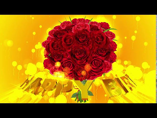 Шикарный футаж HAPPY BIRTHDAY. БУКЕТ КРАСНЫХ РОЗ на золотом фоне с эффектом воздушных шариков