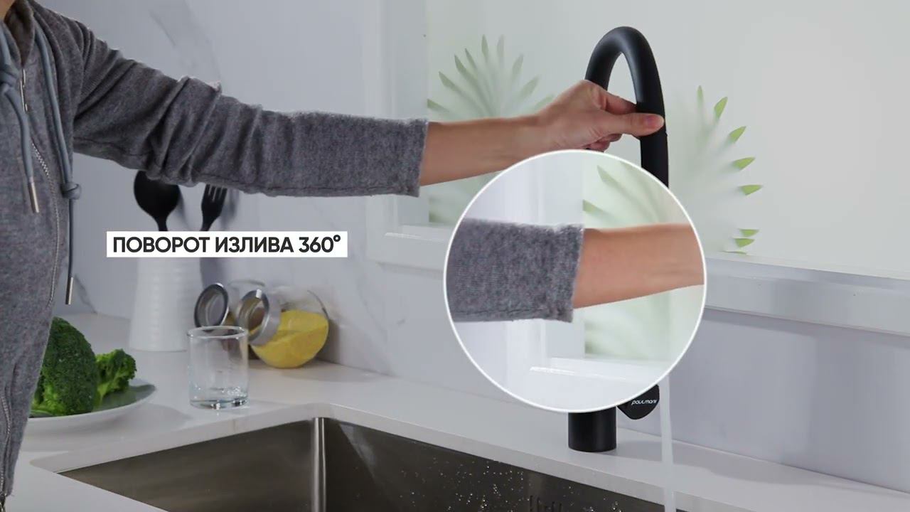 Смеситель Paulmark Salix Sa213419-418 для кухон.мойки, под фильтр, с гибким изливом, черный металлик
