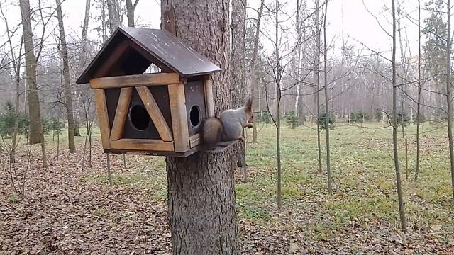 Белочка обедает в парке