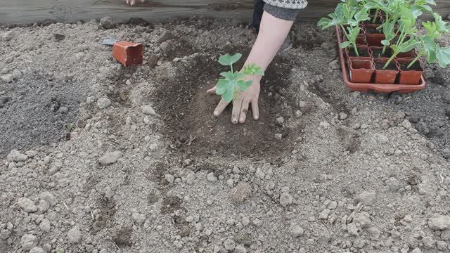 Высаживаю арбузы в открытый грунт.