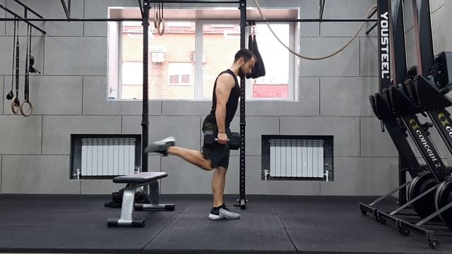 Болгарский сплит-присед с гантелями в руках