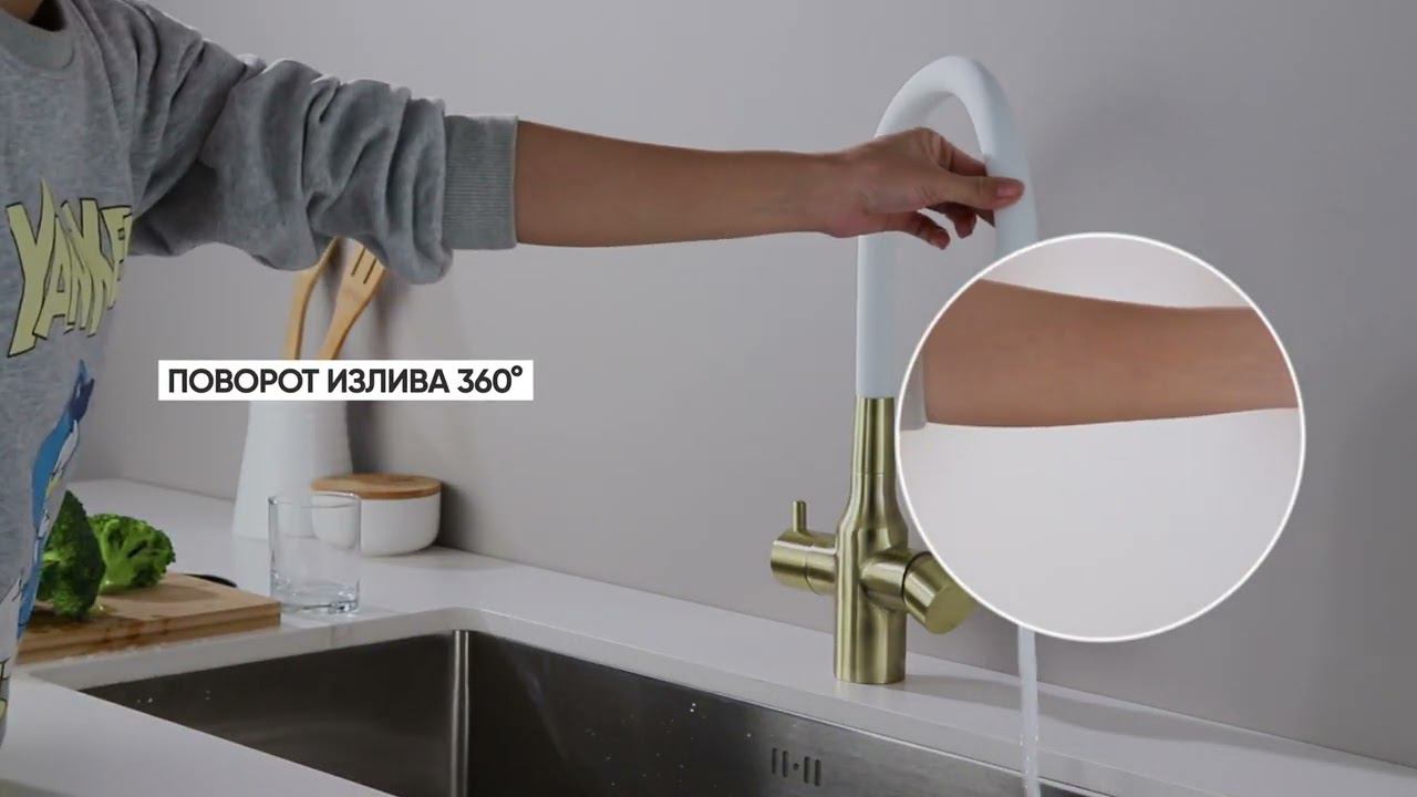 Смеситель Paulmark Salix Sa213419-BRw для кухонной мойки, под фильтр, с гибким изливом, бронза/белый