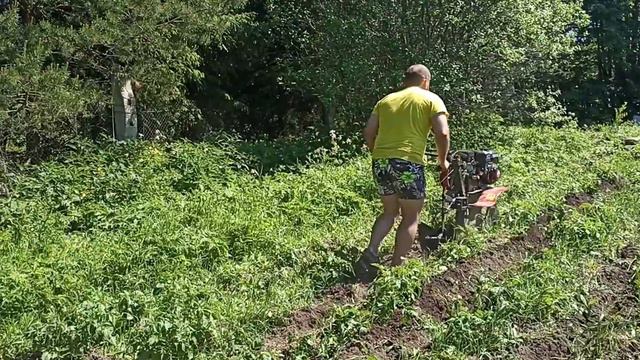 Окучивание картофеля мотоблоком Ока. Узкие грунтозацепы.