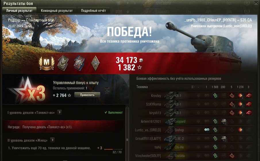 РЕДШИР МАСТЕР на S35 CA ОПЫТ: 921 СУММАРНЫЙ УРОН: 2847