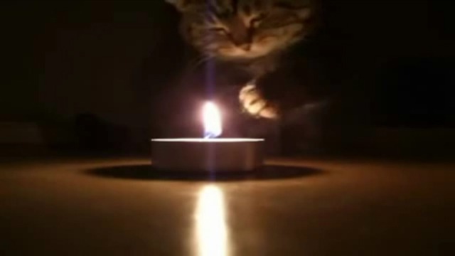 То ли греет лапу, то ли тащится от запаха палёной шерсти!