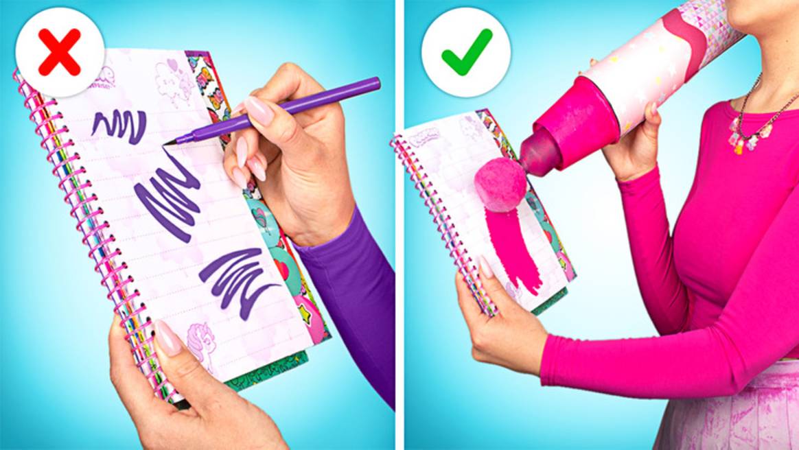 Привет, дорогие друзья! А вы когда-нибудь представляли себе огромные школьные принадлежности? Держитесь крепче - Сью и Саманта приглашают вас в интересное путешествие с их новыми поделками! Приготовьтесь, потому что вы увидите черные и цветные крафты в стиле Уэнсдэй и Инид! Поехали! Для начала мы покажем вам, как сделать гигантский фломастер с помощью стеклянной бутылочки, крышечки, пенопласта и крутых украшений. Мы смастерим черный и розовый фломастер - в стиле Уэнсдэй и Инид! И знаете, что, друзья? Нашими фломастерами можно рисовать! Разве это не потрясающе? Но это еще не все! Мы смастерим и другие принадлежности, например, необычный держатель для скотча, бумагу для заметок в радужном стиле, крутую гуашь, а еще огромную ручку со сладким сюрпризом внутри! Ну что, хотите увидеть финальный результат? Тогда скорее смотрите наше интересное видео!