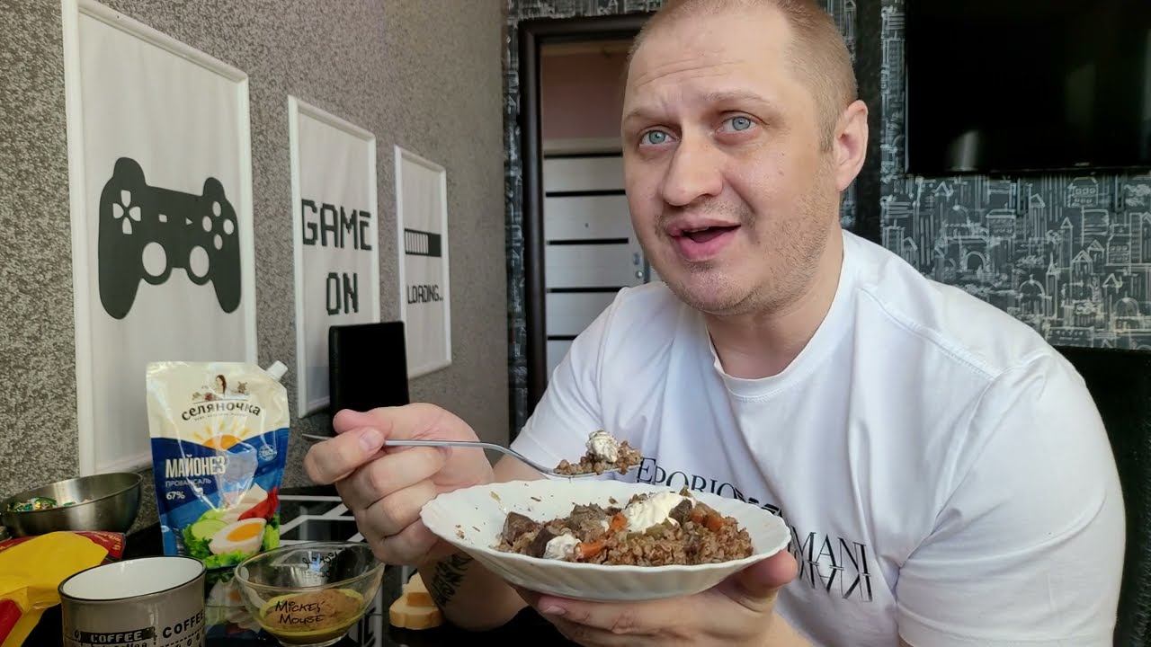МУГБАНГ - ГРЕЧКА С ЖАРЕНОЙ СВИННОЙ ПЕЧЕНЬЮ И ОВОЩАМИ