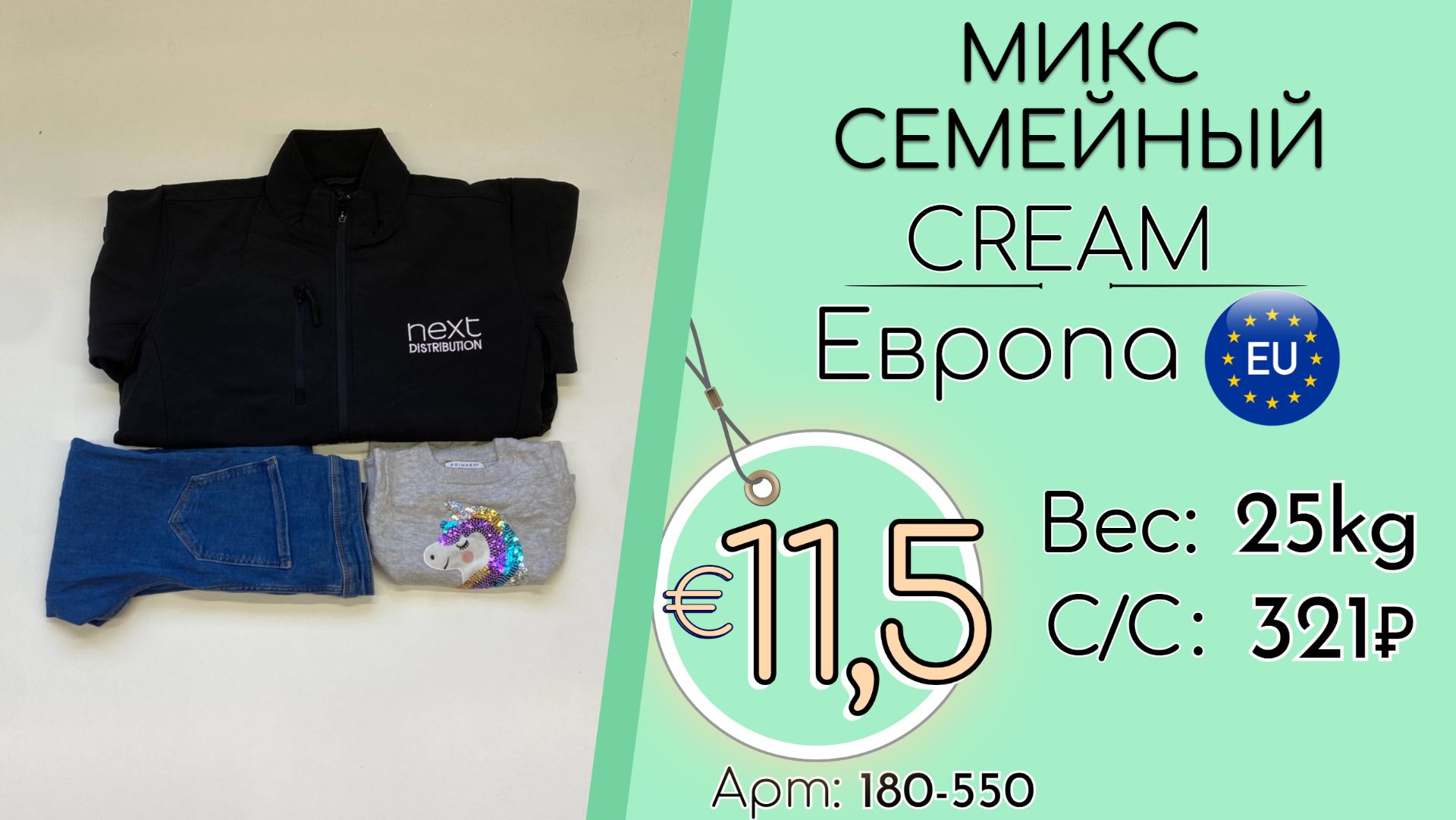 Страна: Европа Вес мешка: 25 кг Цена за кг: Евро 11,5 / Рубли 1 093 Цена за мешок: 27 313 руб. Себестоимость одной вещи: 321 руб. Кол-во штук: 85 шт. ____ 💰 Курс на дату съемки (28.11.2025): €1 = 95 Руб. (при наличных и безналичных платежах) 💳 €1 = 95 Руб. (при безналичной форме оплаты на р/с) Связаться с нами: +7(916)779-79-79 (WhatsApp, Telegram) Наш сайт: https://secondtex.ru Instagram: https://instagram.com/secondtex.opt Мы ВКонтакте: https://vk.com/secondtex
