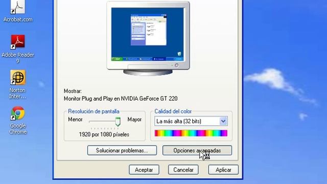 Cambiar resolución y refresco de la pantalla en windows XP