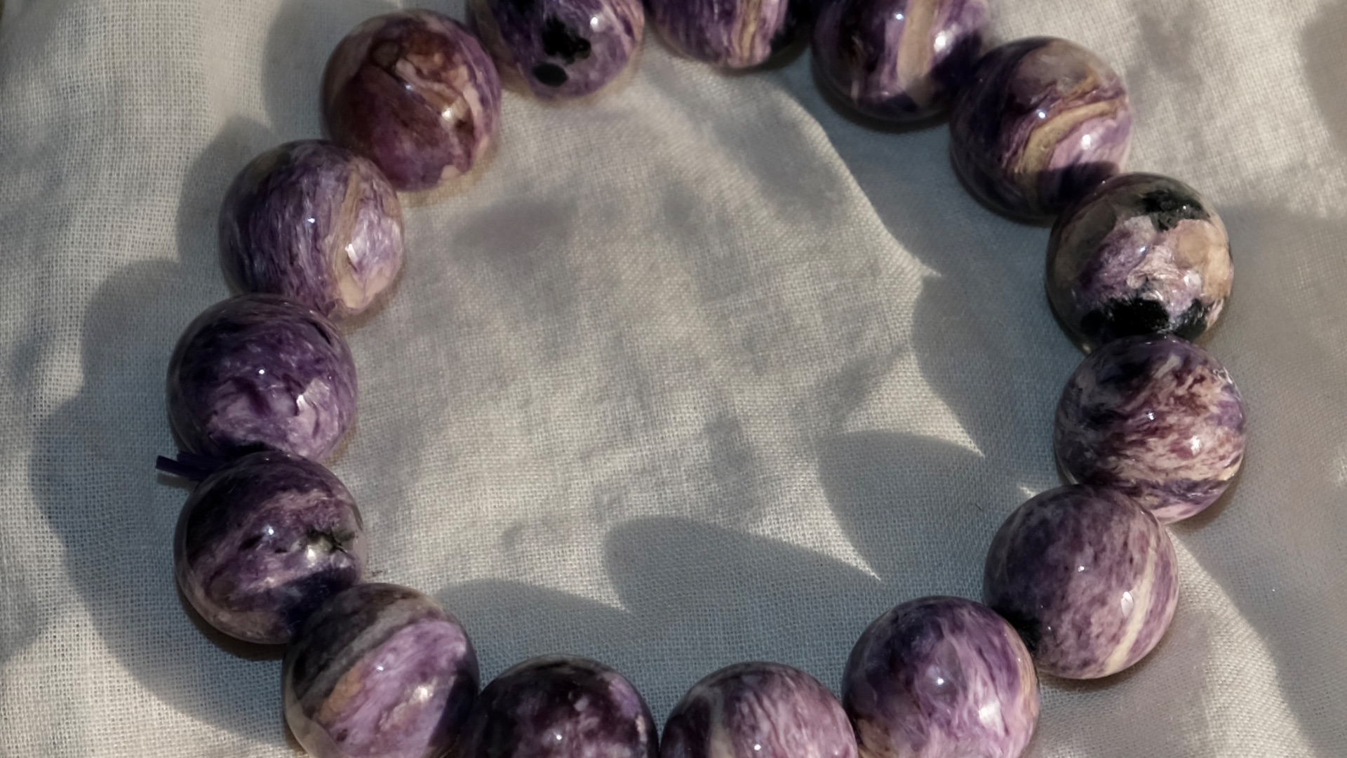 Чароит браслет крупные бусины 14 мм. Браслет с крупными бусинами природного чароита. Сибирь. Параметры: Бусины - 14 мм. Вес 55,55 гр. Фото при разном освещении. Чароит редкий камень, который добывается только в одном месторождении на планете. Минерал был назван в честь реки Чара, в районе который он впервые был обнаружен. Чароит — минерал волшбы - Магов, гуру. Камень с сильной энергетикой и широким спектром проявления. Улучшает способность воспринимать и обучаться…открывать тайны… Также, придает своему владельцу магнетизм и умение воздействовать без подавление воли, а именно делая более манким и притягательными для окружения. Помогает в творческих изысканиях. Ношение чароита в качестве амулета, также будет способствовать: - улучшению интуиции; - открытию новых талантов; - защите от недоброжелателей; - повышению осознанности и концентрации… Чароит рекомендуется регулярно очищать под проточной водой, что бы снять энергетическую скверну.
